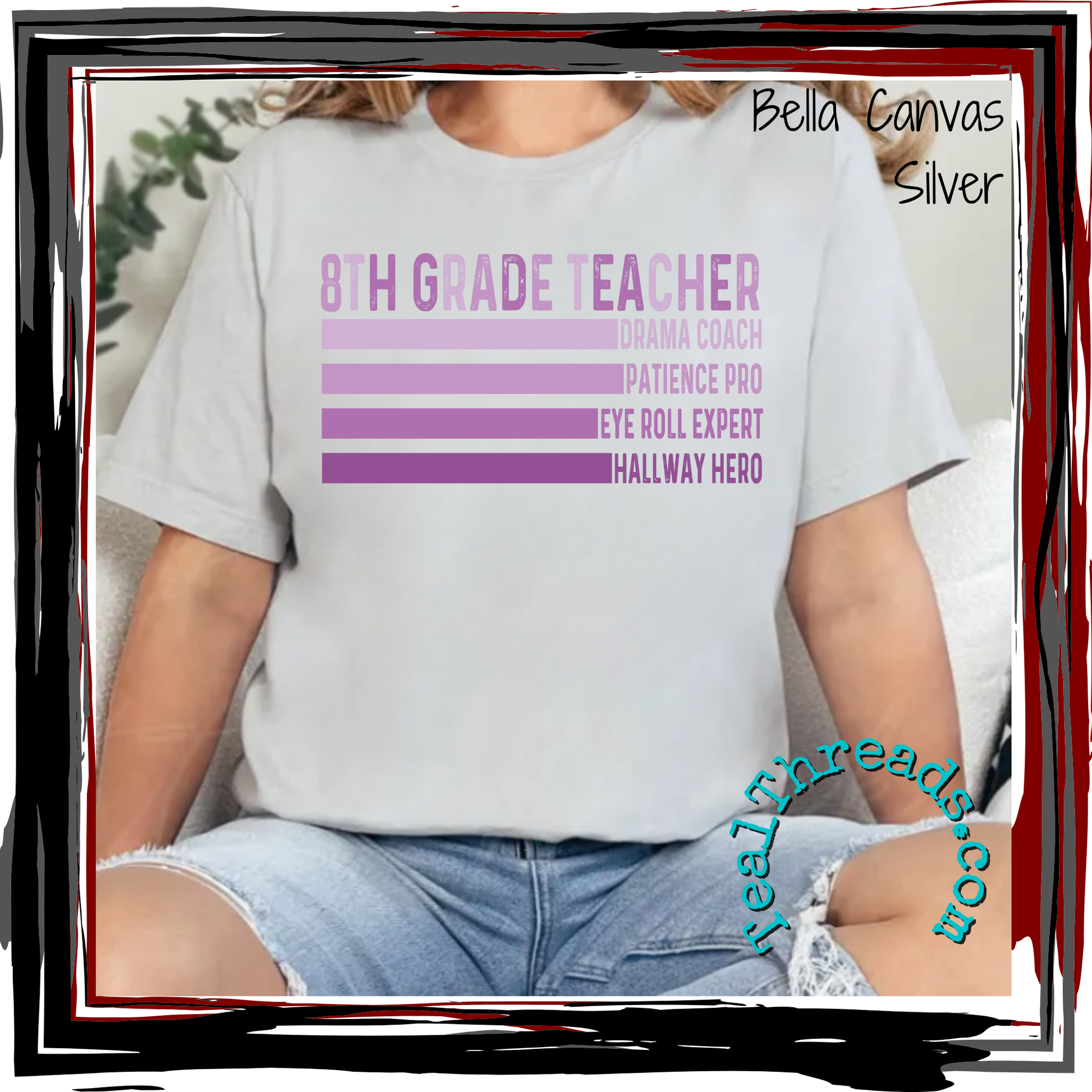 This cute 8th grade teacher design comes on a soft unisex shirt of your choice. You pick the shirt color and style and choose between a lilac or blue design.