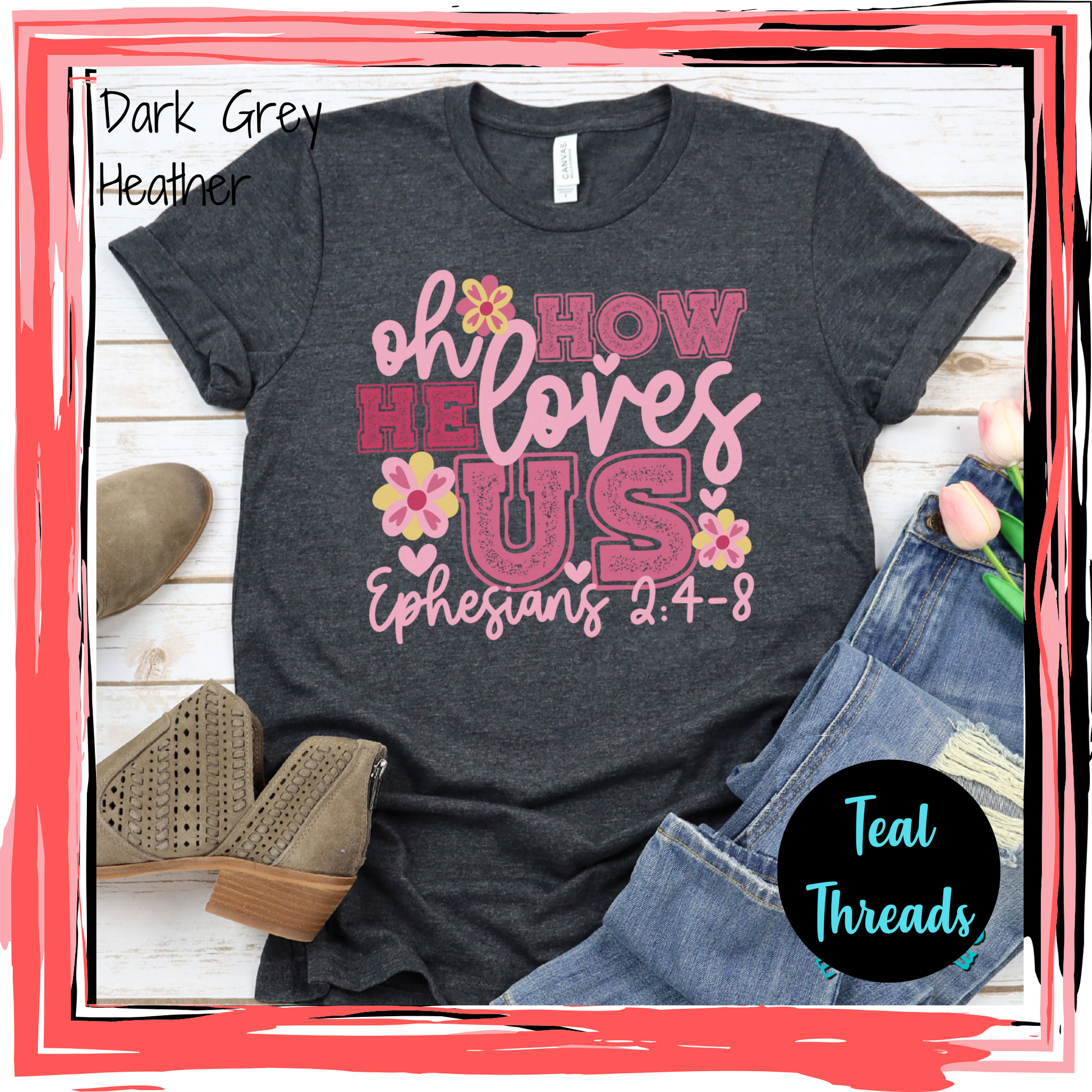 This cute design comes on a super soft shirt of your choice. See the color charts for other color options and be sure to enter it as seen in the pictures.